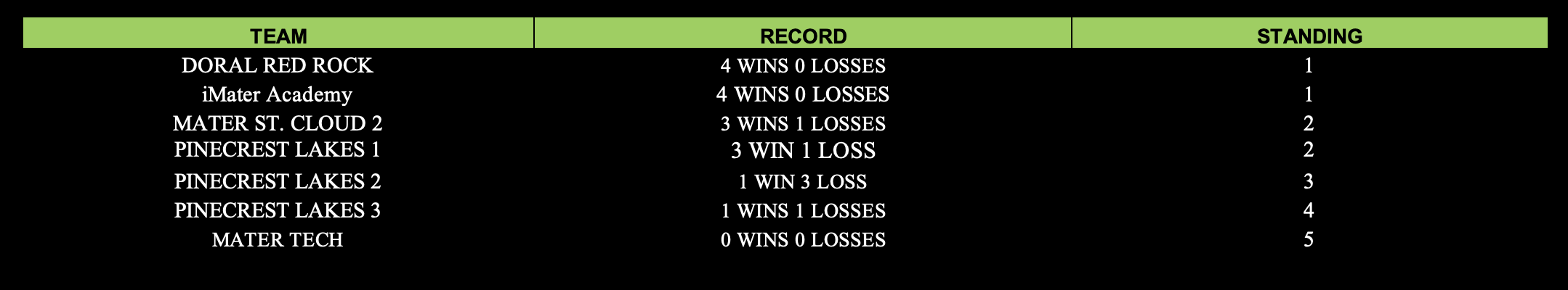 WEEK 4 standings: